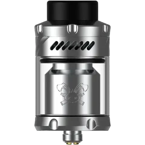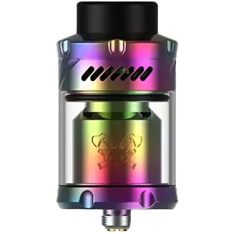 The Dead Rabbit V3 RTA is a rebuildable atomizer designed by Hellvape. With a diameter of 25 mm for a capacity of 5 ml, it has a postless double coil deck, an 810 drip tip and airflow perfectly optimized for direct inhalation.