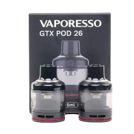 يتميز Vaporesso GTX Pod 26 بنظام تعبئة علوي يمكنه استيعاب ما يصل إلى 5 مل من السائل الإلكتروني وتصميم شفاف يسهل على المستخدمين مراقبة الحجم المتبقي. يتمتع Vaporesso GTX Pod 26 بتقنية SSS المتقدمة نسبيًا المقاومة للتسرب والتي توفر أداءً ممتازًا مانعًا للتسرب. يستخدم GTX Pod 26 طريقة الدفع والسحب لتثبيت الملفات، مما يجعلها أسهل وأسرع في الاستبدال. وهو متوافق مع جميع الملفات الموجودة على منصة GTX، بما في ذلك RBA، ومع AFC القابل للتعديل بشكل لا نهائي في الأسفل، فإنه يحقق نتائج vaping ممتازة. تم تصميم Vaporesso GTX Pod 26 خصيصًا لمجموعة Vaporesso GTX Go 80 Kit، ويأتي في صندوق يحتوي على حجرتين فارغتين، بدون ملفات متضمنة.