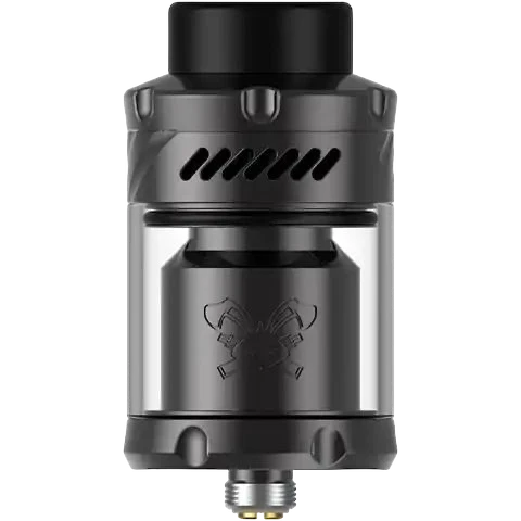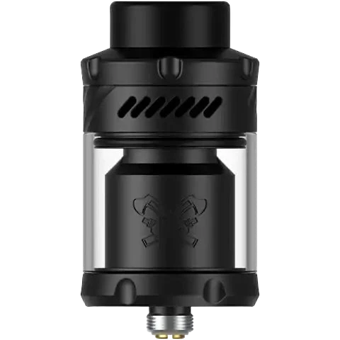 The Dead Rabbit V3 RTA is a rebuildable atomizer designed by Hellvape. With a diameter of 25 mm for a capacity of 5 ml, it has a postless double coil deck, an 810 drip tip and airflow perfectly optimized for direct inhalation.
