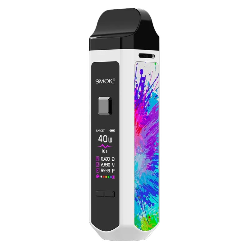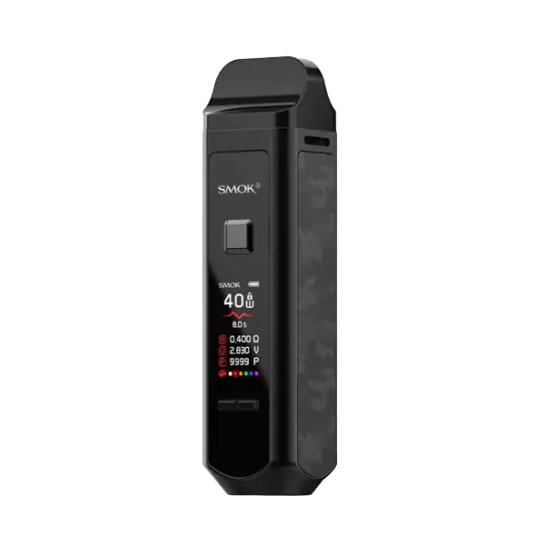 زود RPM40 بشريحة IQ-R وهي شريحة جديدة انتجته Smok مؤخراً، وتتميز بأنها تقصر مدة الإستجابة إلى 0.001 ثانية، كما ان هذه الشريحة تُشحن الجهاز في وقت لا يتجاوز الساعتين. يختلف تصميمه عن أجهزة Pod التقليدية والصغيرة، ويشبه الى حد كبير الأجهزة التقليدية box mod، يوجد من الأمام شاشة ملونة واضحة من نوع OLED وتأتي بمقاس 0.96 بوصة، تظهر لك هذه الشاشة جميع بيانات الجهاز بوضوح مثل: عمر البطارية، القوة الكهربائية، المقاومة، الجهد، وعدد السحبات.